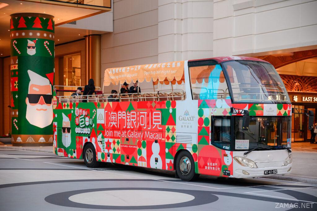- 而「夢想就該獨巨一格」開篷觀光巴士將慶典帶到澳門街頭,由現在起至12月31日,可在觀光巴士上遊覽澳門超過10個知名地標和世界遺產地點,在這節日季節探索澳門的風貌。開篷觀光巴士將途經多個旅遊景點,包括媽閣廟、澳門旅遊塔及澳門科學館等地標。