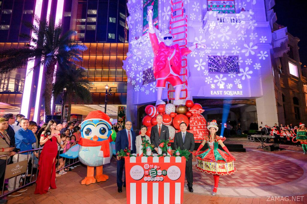 在東翼廣場揭幕的巨型聖誕老人,以最具型格、全天候和全新閃亮的造型,為澳門的天際線增添節日色彩,成為今個冬日假期的旅遊熱點。由現在至2024年1月7日,「澳門銀河」和澳門星際酒店將特別呈獻各種奪目耀眼的節日裝置、聖誕專屬活動、節慶現場表演、新年倒數派對、精緻美食盛宴和獨家購物禮遇,讓賓客與摯愛在度假城感受到聖誕的喜悅氛圍。